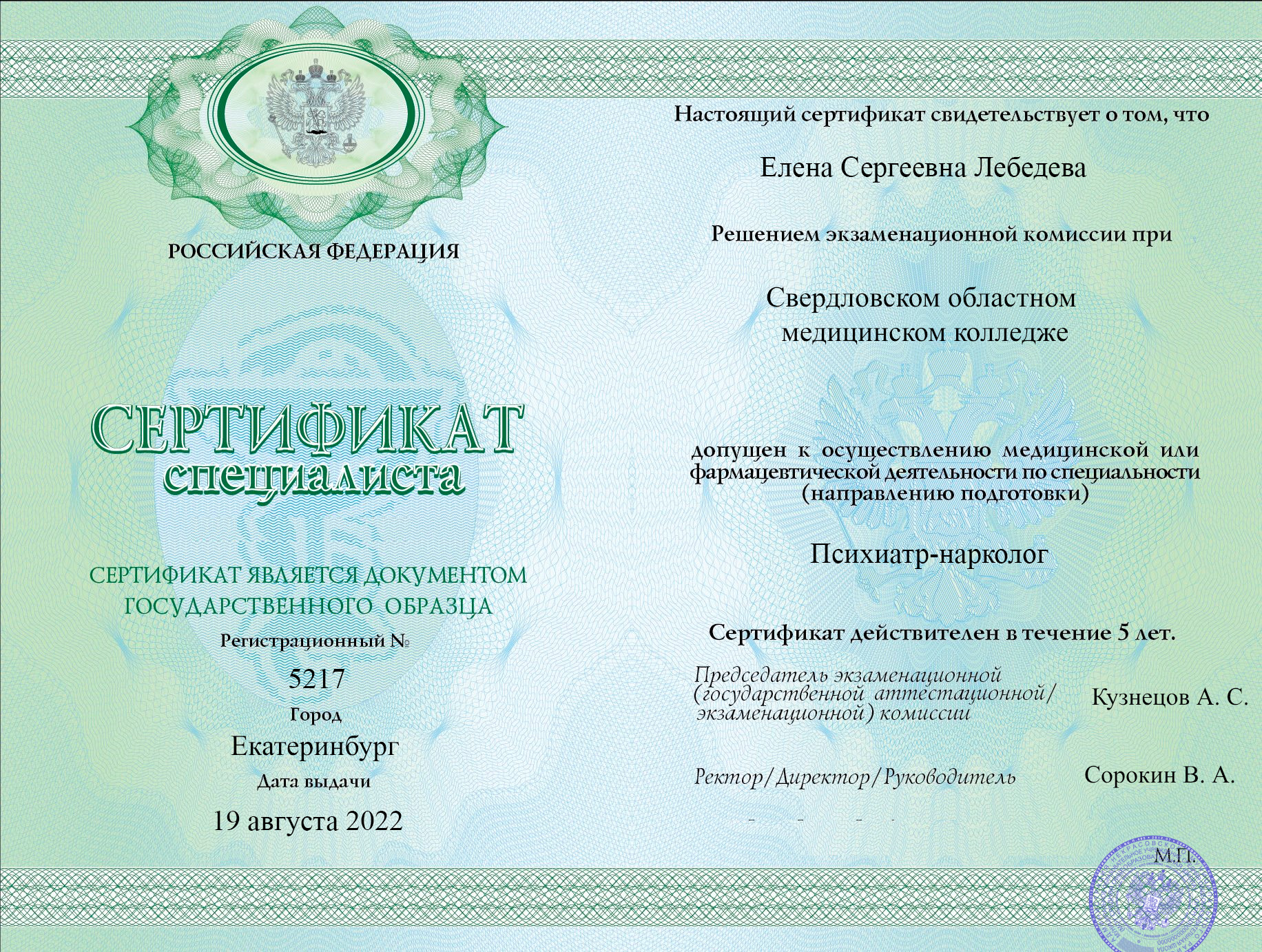 Елена Сергеевна Лебедева врач нарколог клиники доктора Стукаловой в Краснозаводске